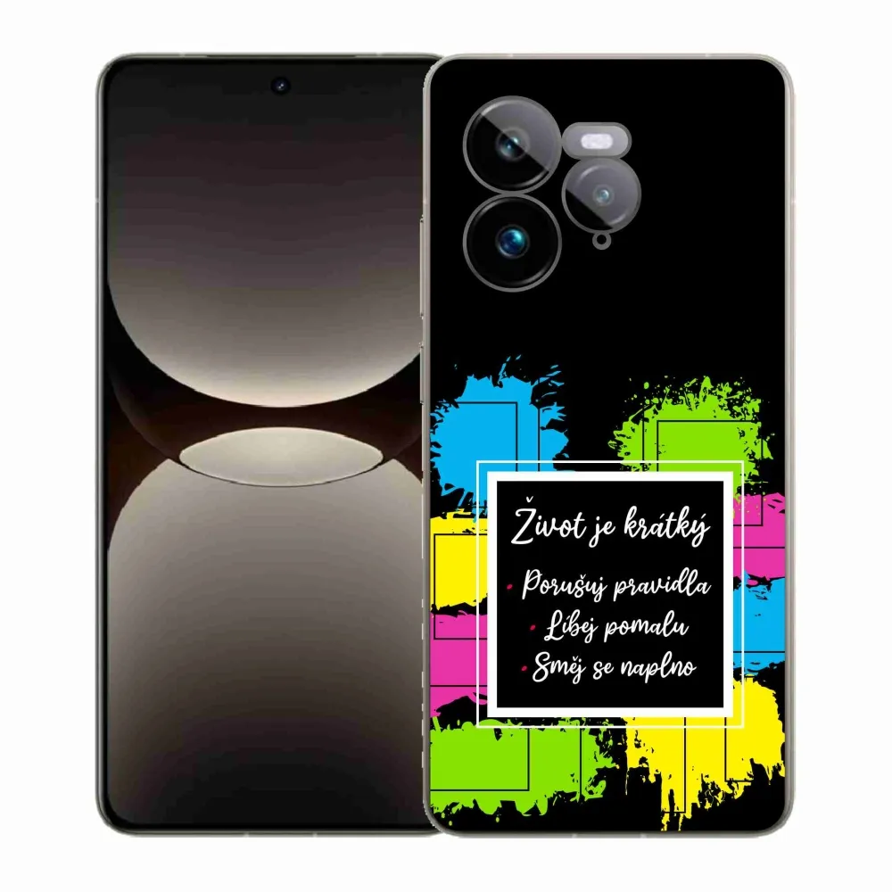 Rugalmas zselés tok mmCase a Realme GT 7 Pro 5G képével - idézet 5 fekete háttérrel