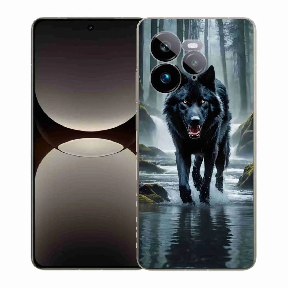 Rugalmas zselés tok mmCase képpel Realme GT 7 Pro 5G - fekete farkas