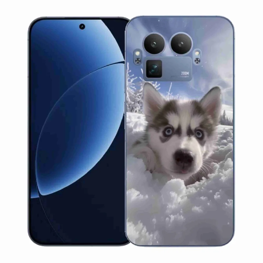 Rugalmas zselés tok mmCase képpel a Realme GT 8 Pro számára - husky a hóban