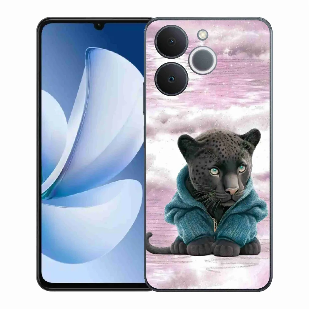 Rugalmas zselés tok mmCase képpel a Realme Note 70T számára - fekete párduc pulóverben
