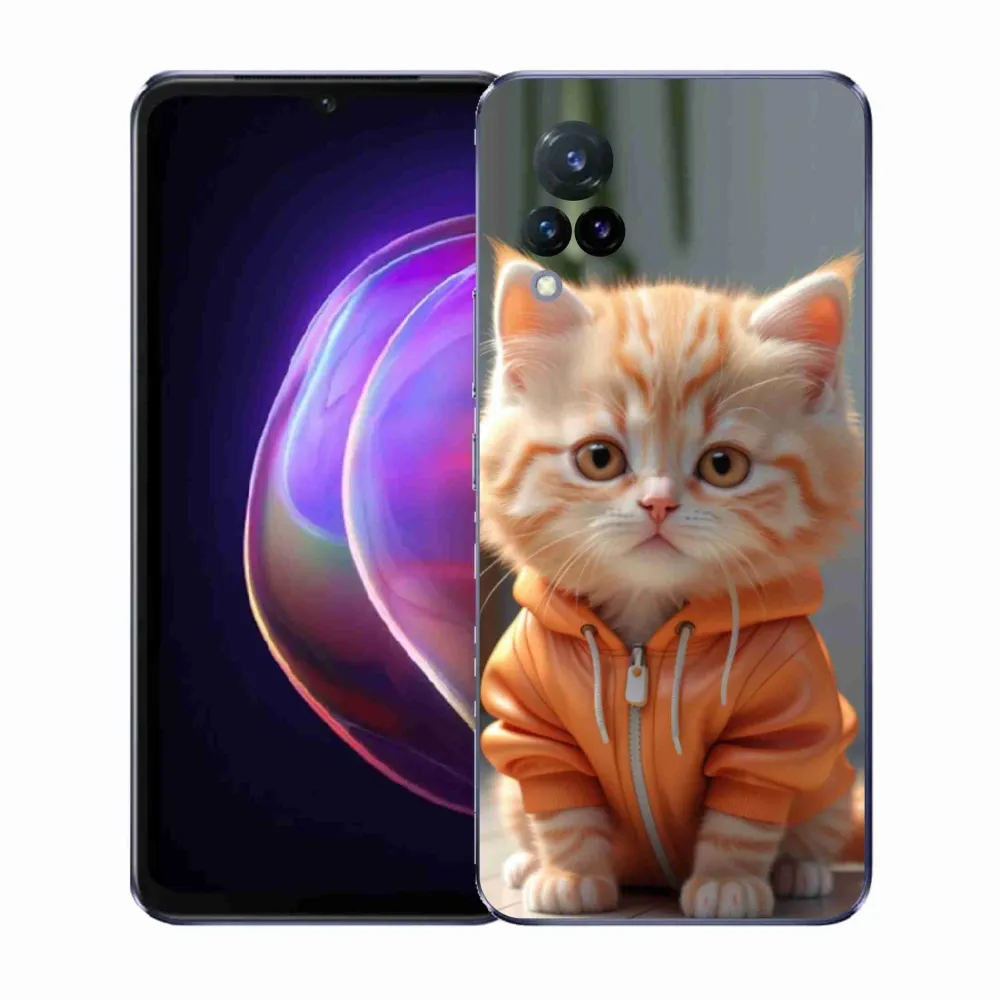 Rugalmas zselés tok mmCase képpel a Vivo V21 4G/5G-hez - cica melegítőben