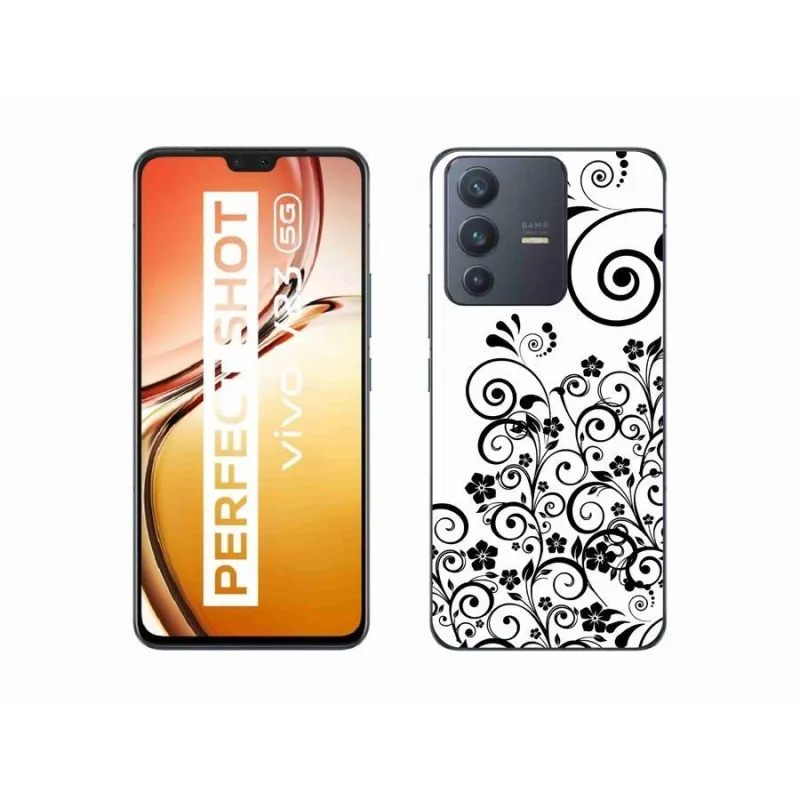 Gél borítás mmCase a Vivo V23 5G készülékhez - fekete és fehér virágminták