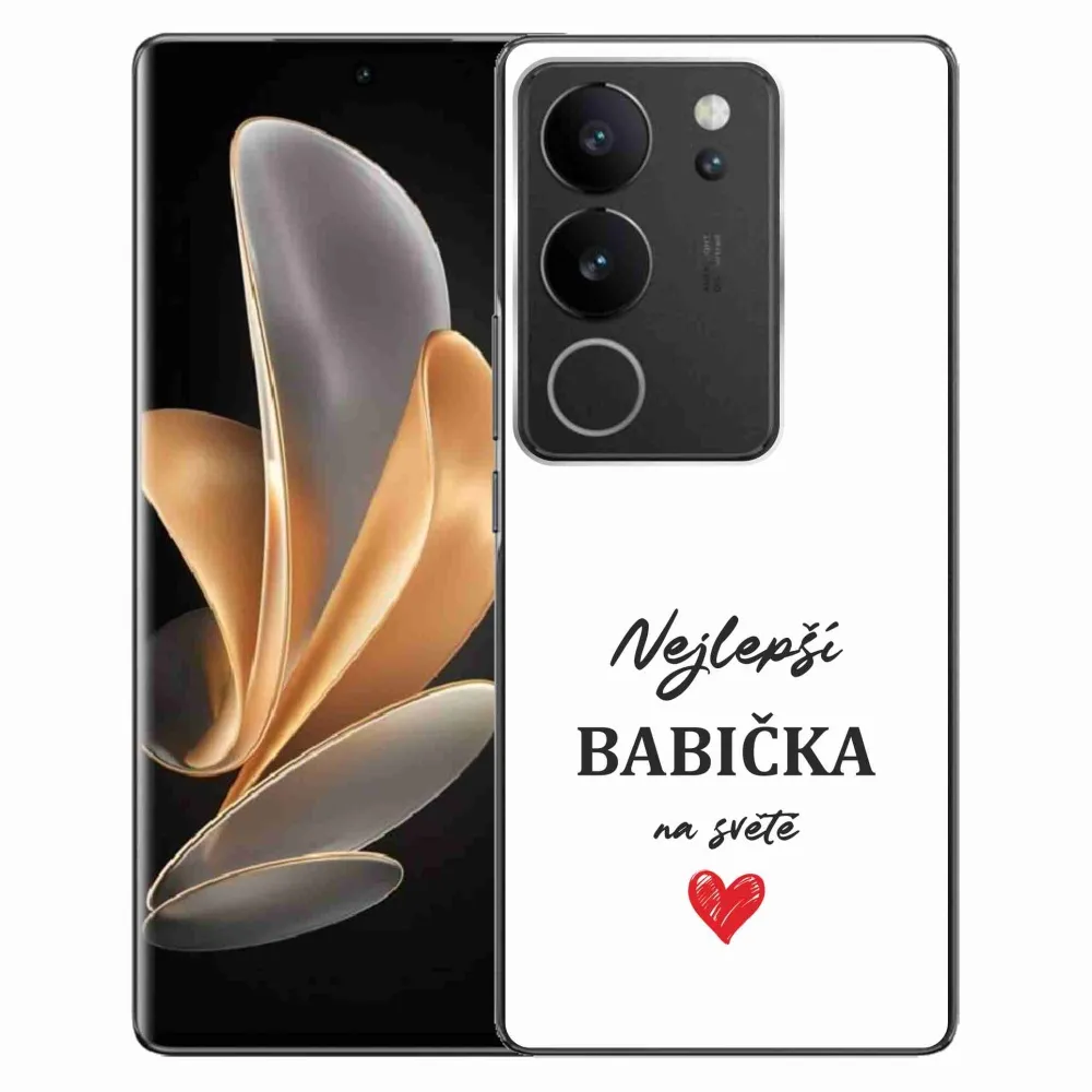 Rugalmas zselés tok mmCase a Vivo V29 5G képével - a legjobb nagymama 1 fehér háttérrel
