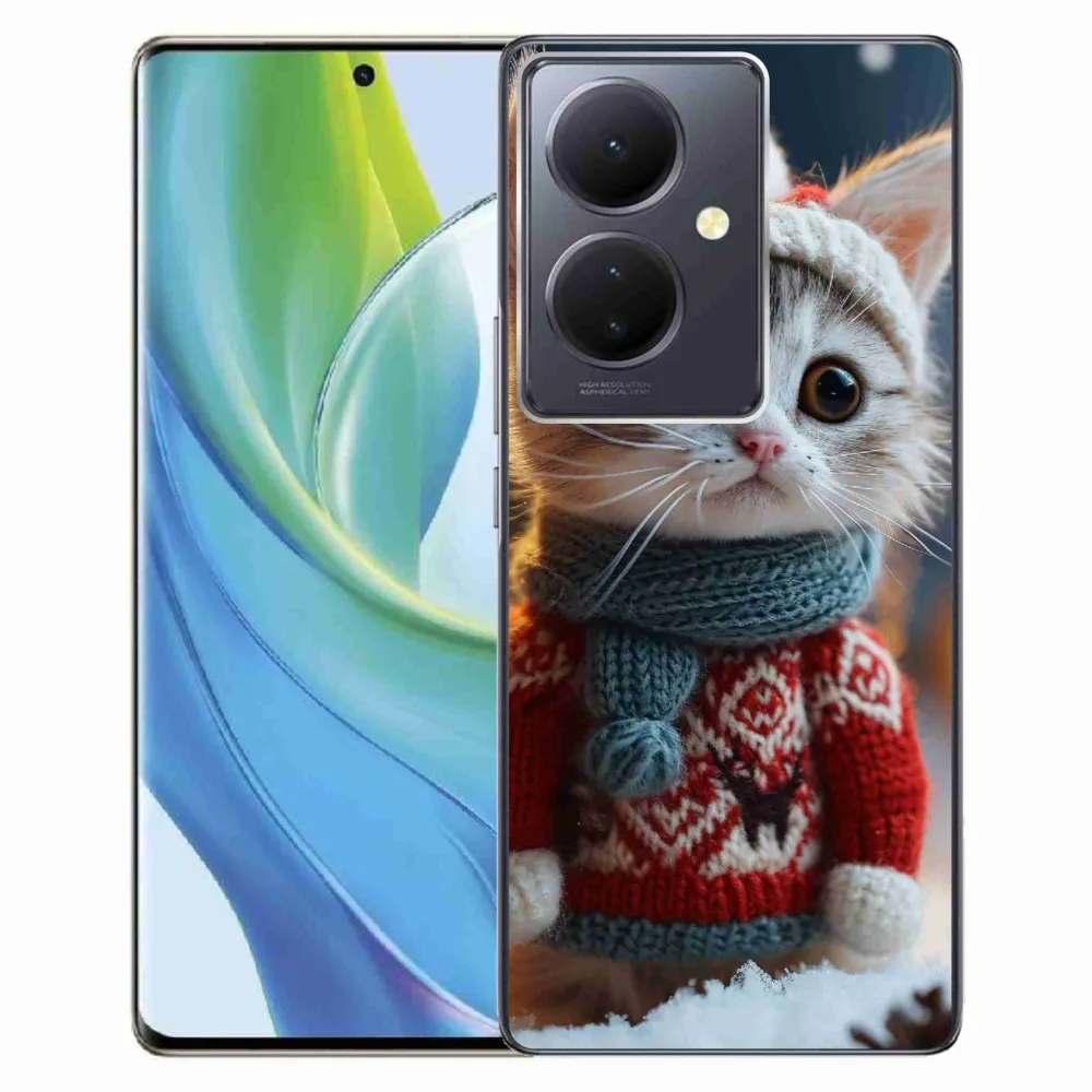 Rugalmas zselés tok mmCase képpel a Vivo V29 Lite 5G számára - cica pulóverben
