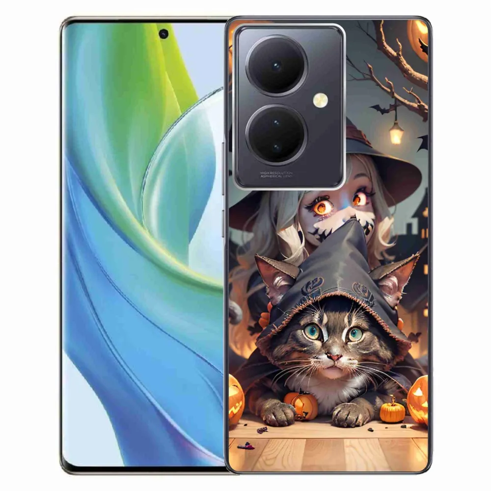 Rugalmas zselés tok mmCase a Vivo V29 Lite 5G képével - boszorkány macskával