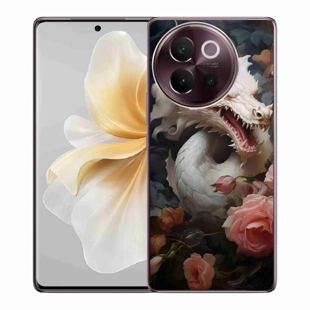 Rugalmas zselés tok mmCase a Vivo V40 Lite 5G képével - fehér sárkány