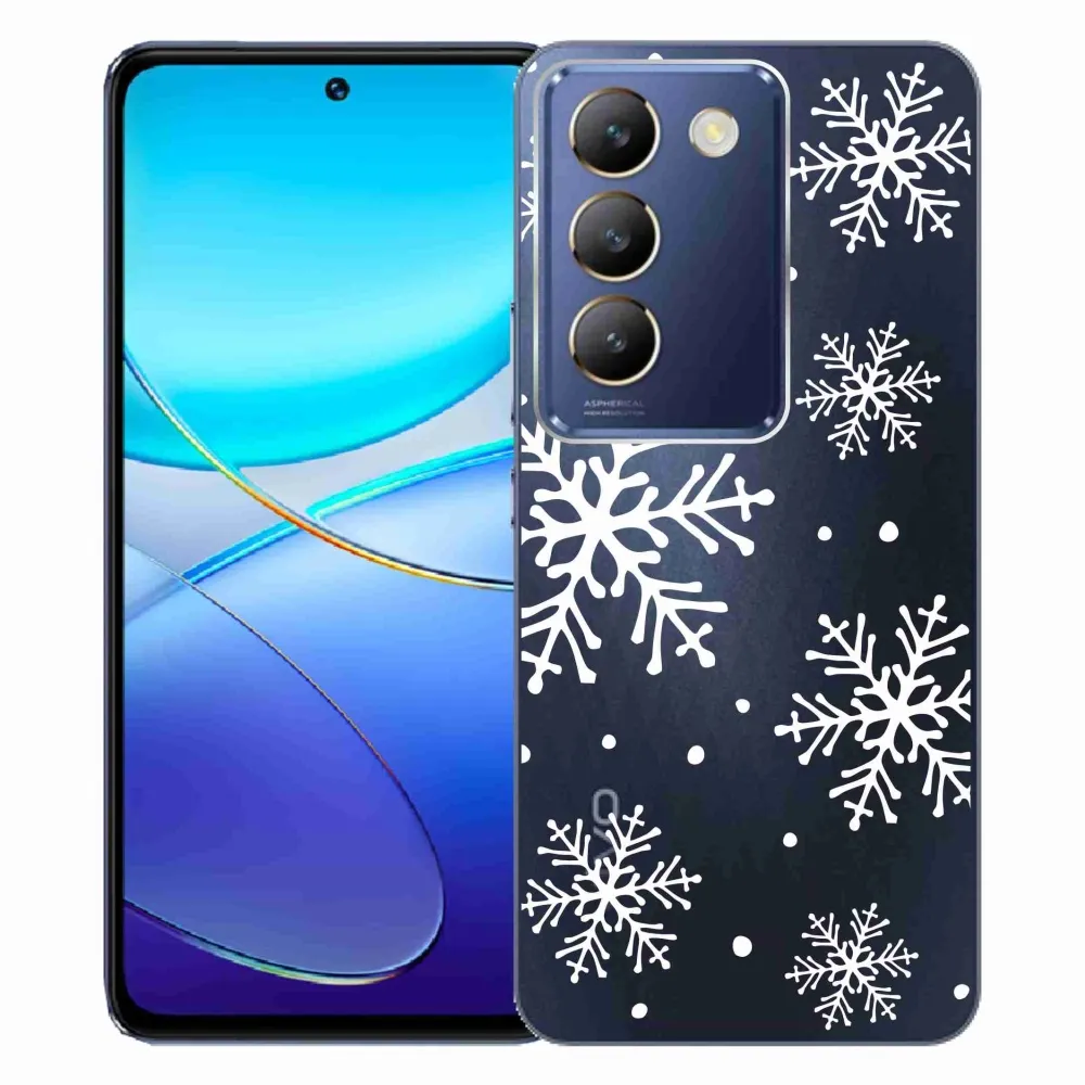 Rugalmas zselés borító mmCase a Vivo V40 SE 4G/5G képével - fehér pelyhek átlátszó háttérrel