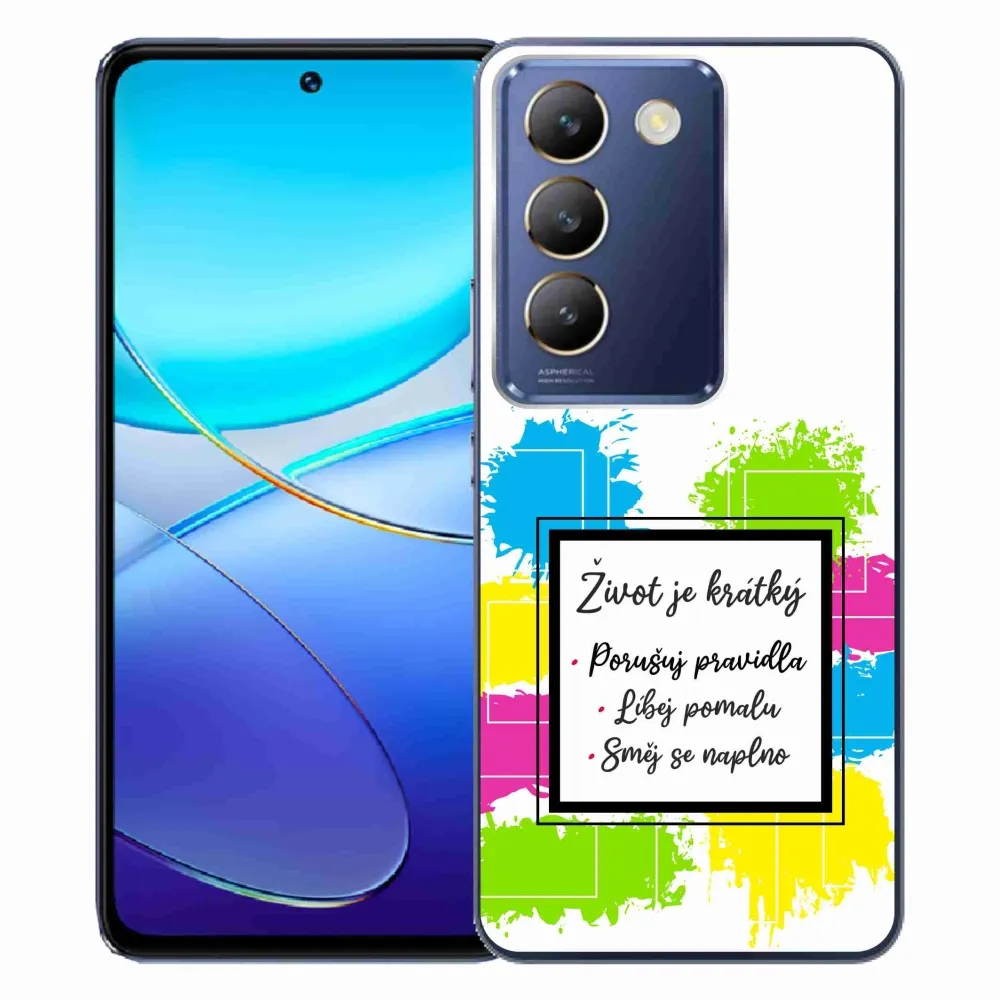 Rugalmas zselés tok mmCase a Vivo V40 SE 4G/5G képével - idézem 5 fehér háttérrel