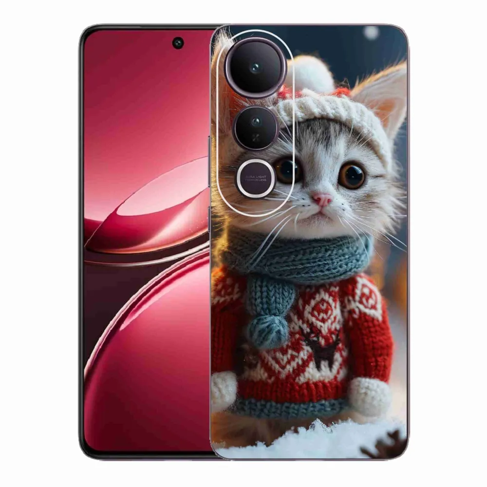 Rugalmas zselés tok mmCase a Vivo V50 Lite 4G/5G képével - cica pulóverben