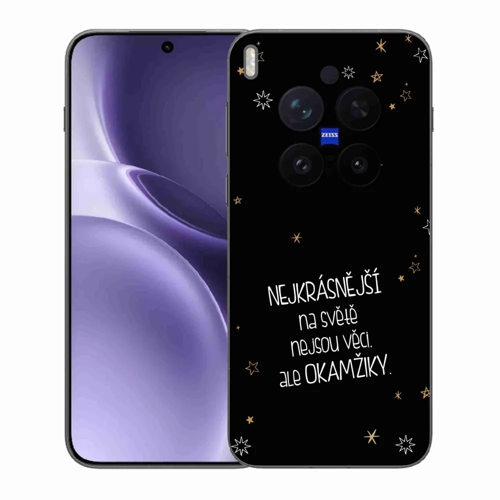 Rugalmas zselés tok mmCase a Vivo X300 Pro képével - idézet 4 fekete háttérrel
