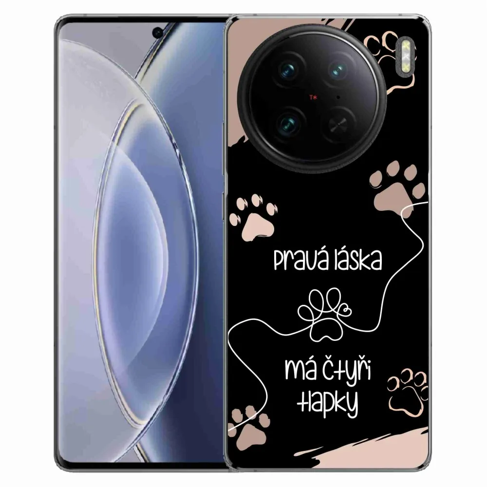 Rugalmas zselés tok mmCase a Vivo X90 Pro képével - kutyamotívum 1 fekete háttérrel