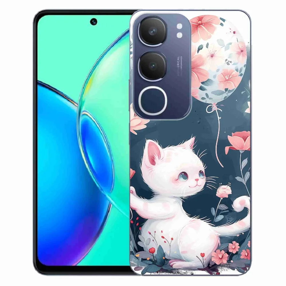 Rugalmas zselés tok mmCase képpel a Vivo Y19s számára - cica lufival