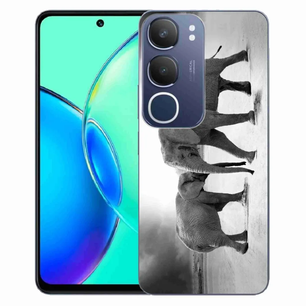 Gél borítás mmCase a Vivo Y19s készülékhez - fekete és fehér elefántok