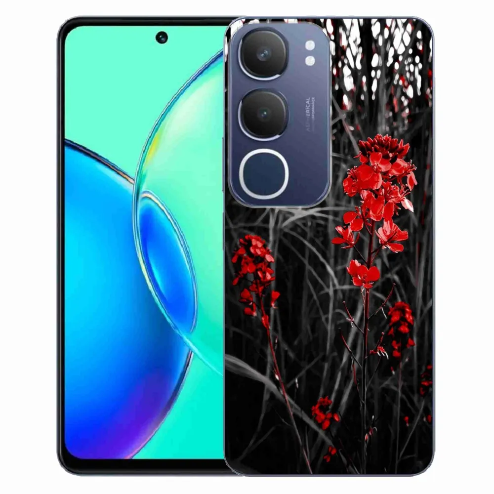 Rugalmas zselés tok mmCase képpel a Vivo Y19s számára - piros növény