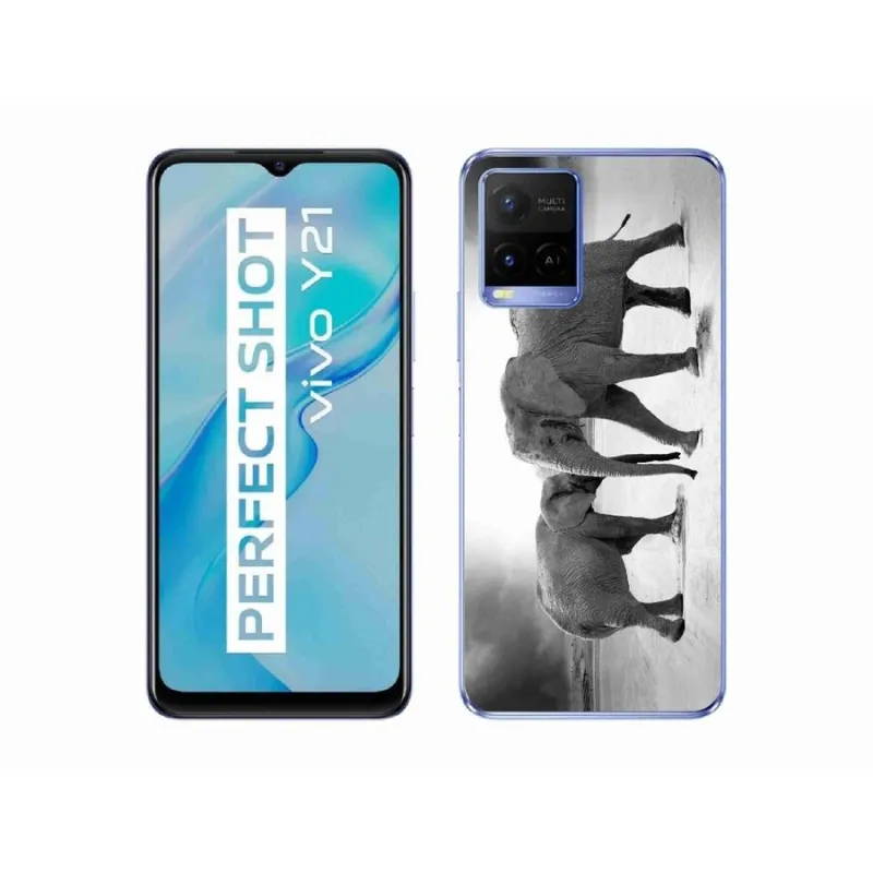 Gél borítás mmCase a Vivo Y21/Y21s/Y33s készülékhez - fekete és fehér elefántok