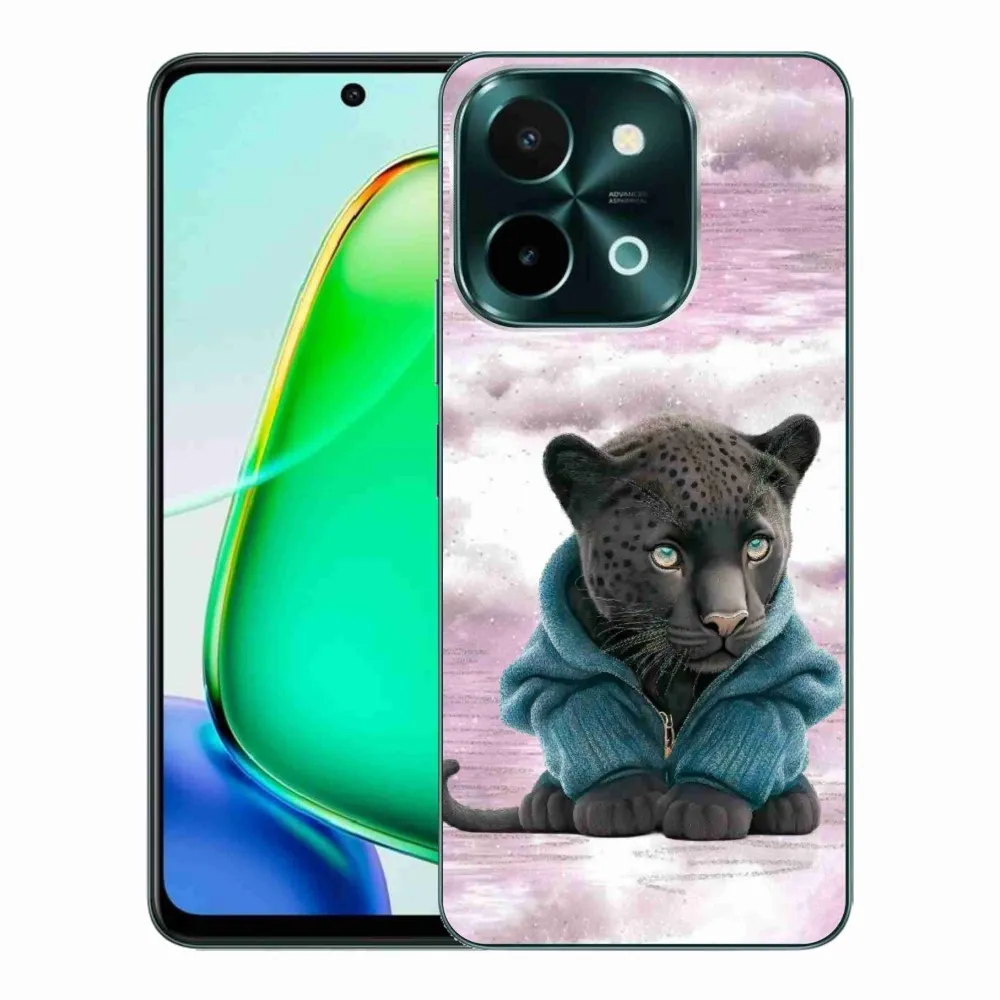 Rugalmas zselés tok mmCase a Vivo Y28 képével - fekete párduc pulóverben