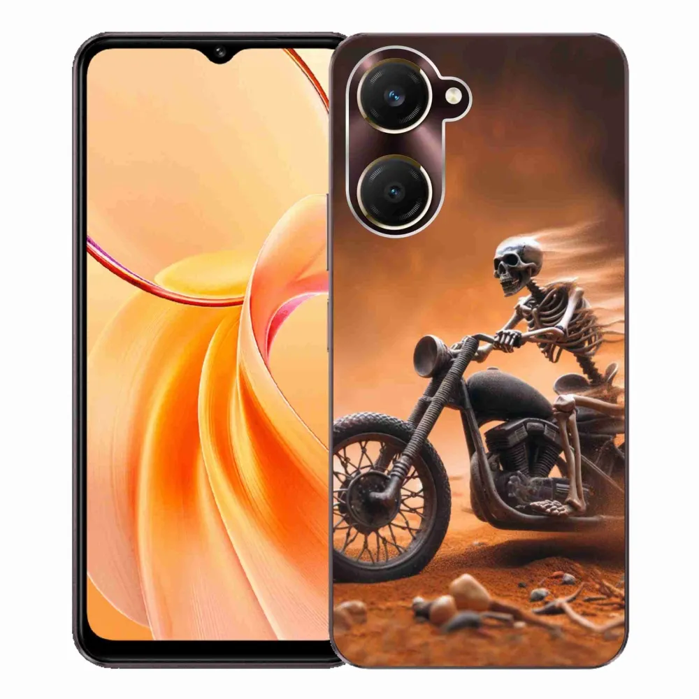 Rugalmas zselés tok mmCase a Vivo Y28s 5G képével - csontváz egy motorkerékpáron