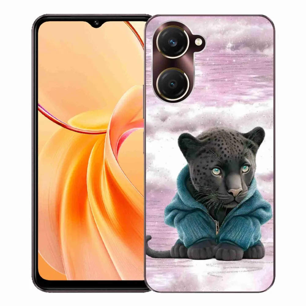 Rugalmas zselés tok mmCase a Vivo Y28s 5G képével - fekete párduc pulóverben
