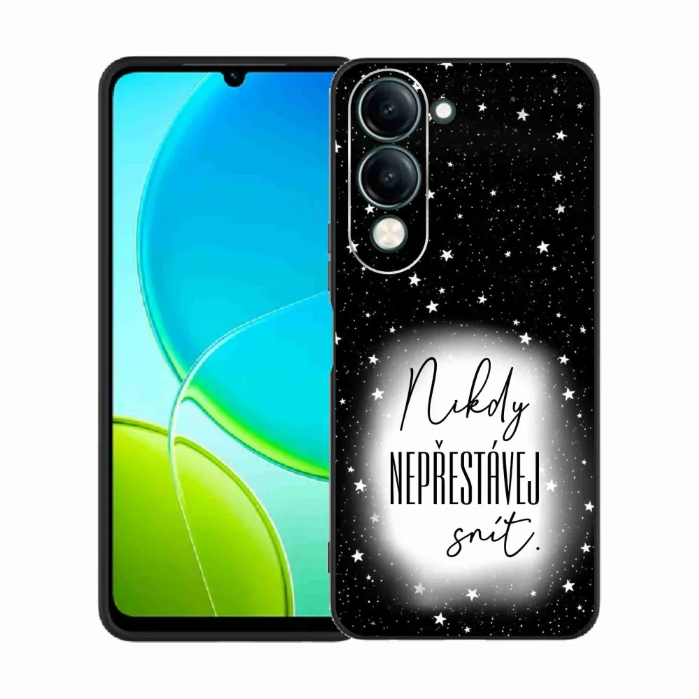 Rugalmas gél tok mmCase a Vivo Y29s 5G képével - idézet 1 fehér és fekete háttérrel