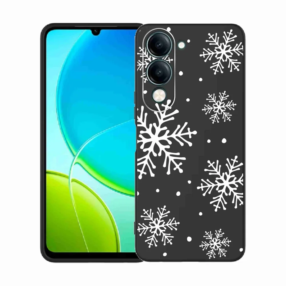 Rugalmas zselés tok mmCase a Vivo Y29s 5G képével - fehér hópelyhek átlátszó háttéren