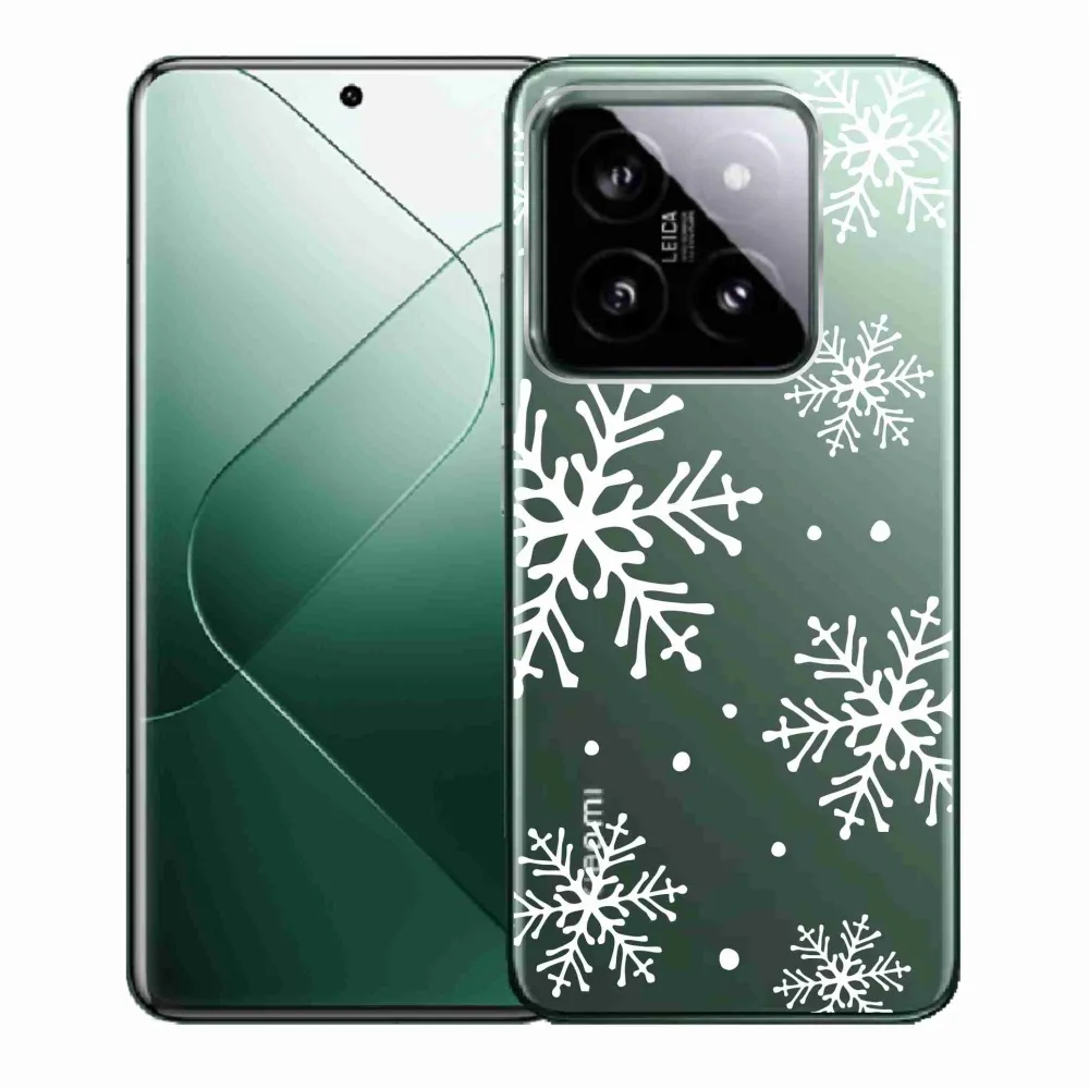 Rugalmas zselés tok mmCase a Xiaomi 14 képével - fehér hópelyhek átlátszó háttéren