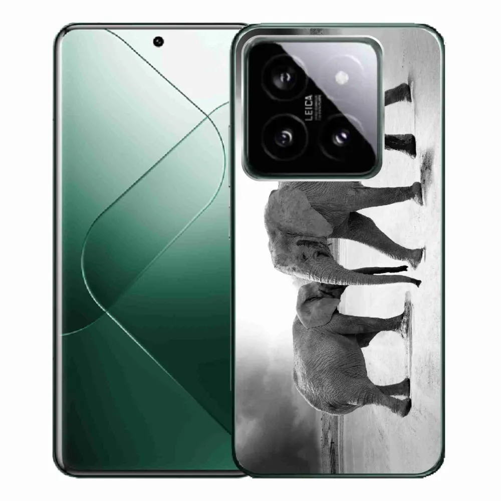 Rugalmas zselés tok mmCase a Xiaomi 14 Pro képével - fekete és fehér elefántok