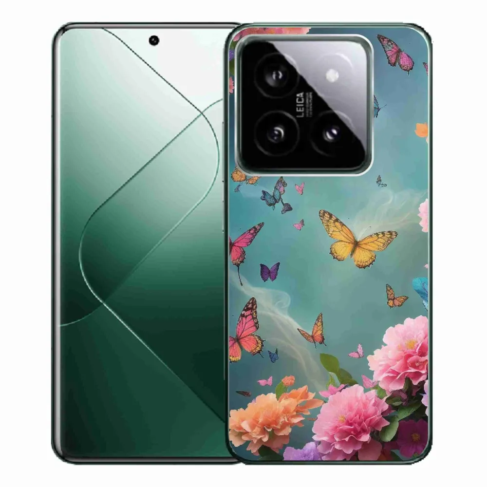 Rugalmas zselés tok mmCase kép Xiaomi 14 Pro - színes virágok és pillangók