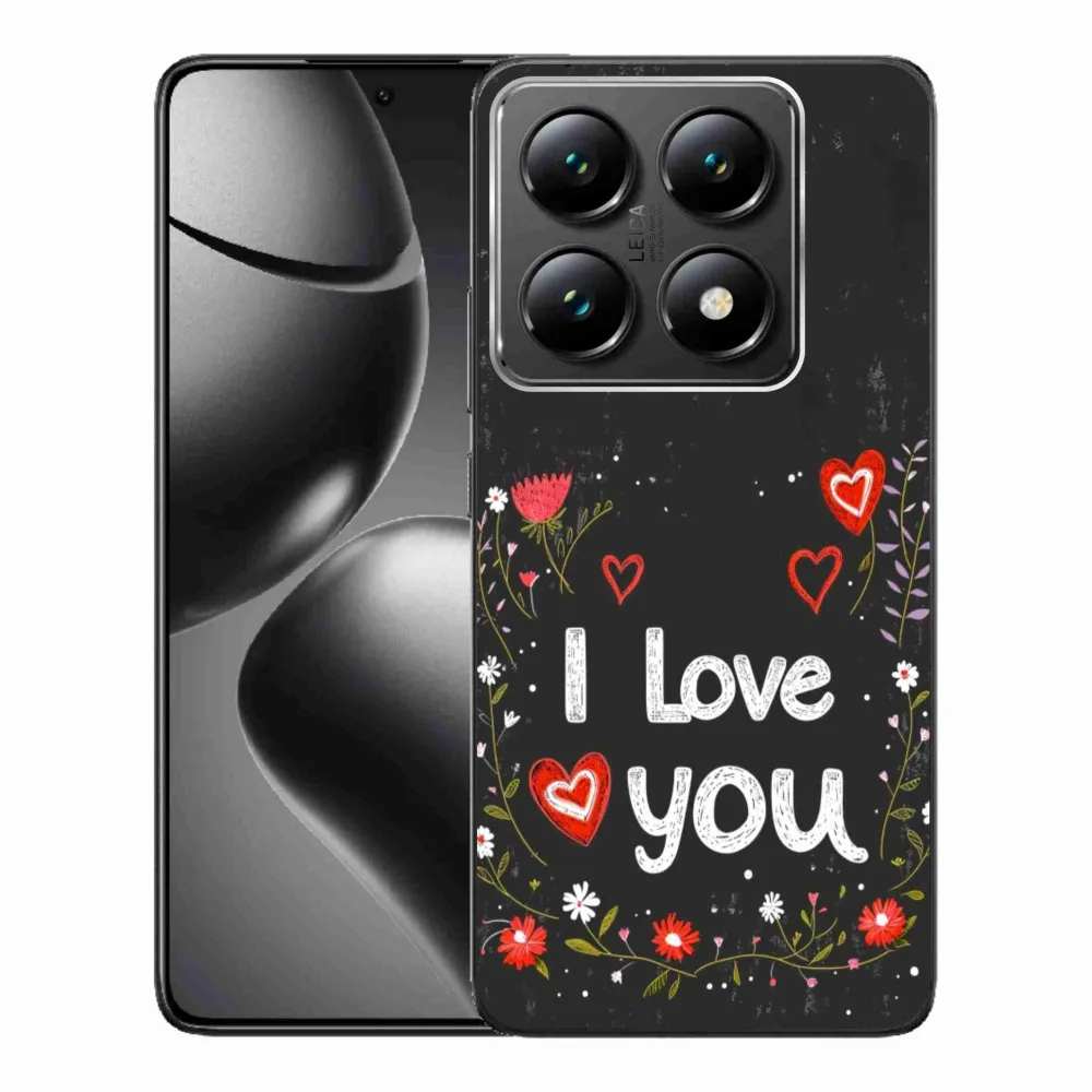 Rugalmas zselés tok mmCase a Xiaomi 14T Pro képével - I love you fekete háttérrel