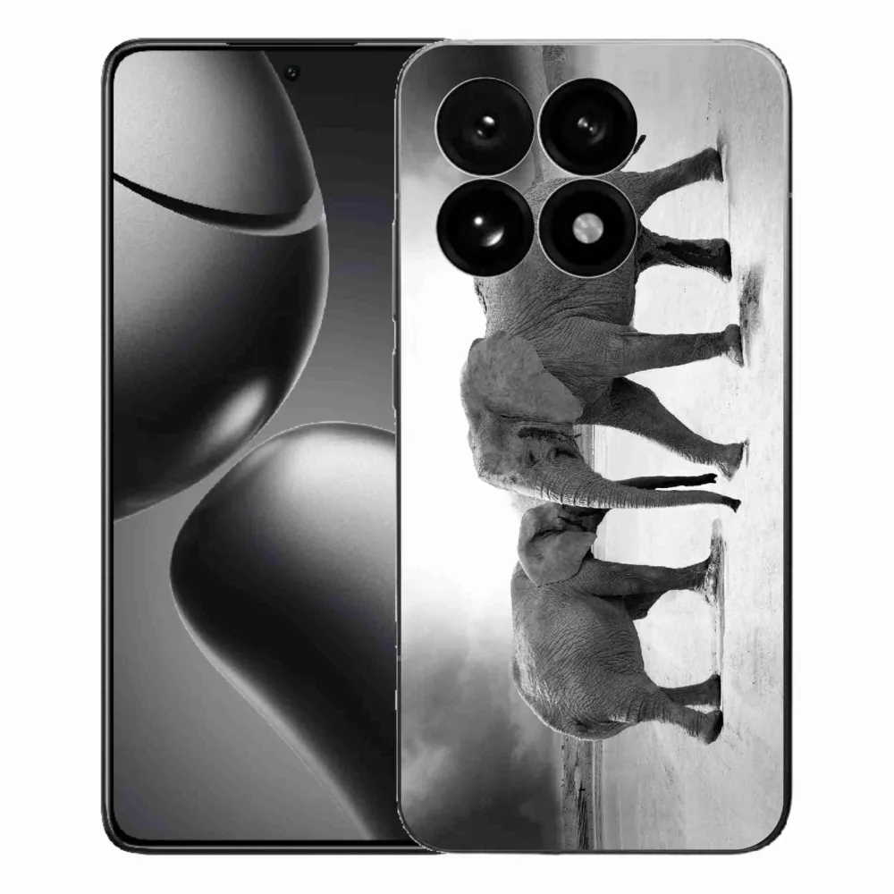 Rugalmas gél tok mmCase kép Xiaomi 15T - fekete és fehér elefántok képével