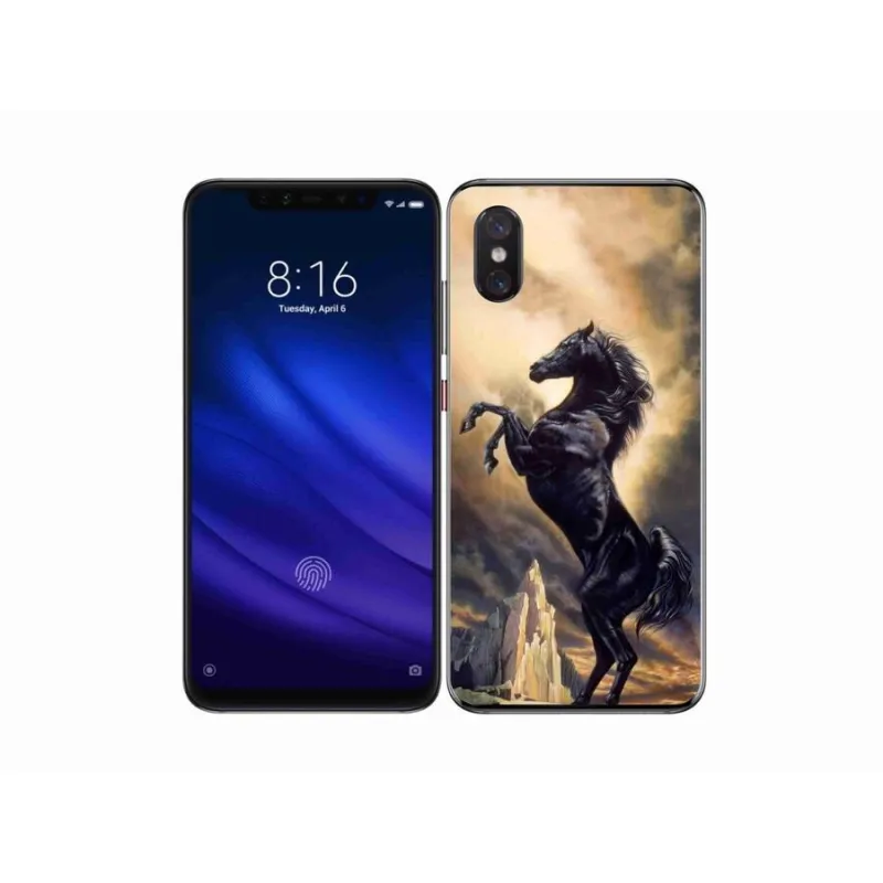 Gél borítás mmCase a Xiaomi Mi 8 Pro számára - fekete rajzfilm ló