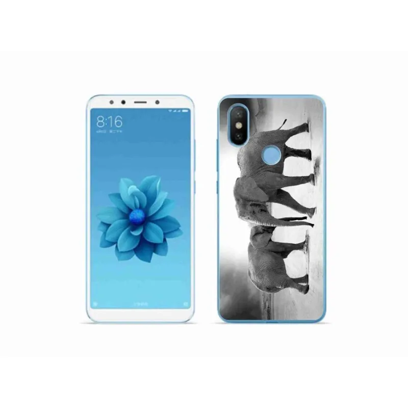 Gél borítás mmCase a Xiaomi Mi A2-hez - fekete és fehér elefántok