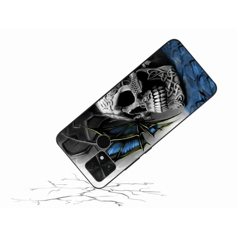 Gél borítás mmCase a Xiaomi Poco C40 készülékhez - pillangó és koponya