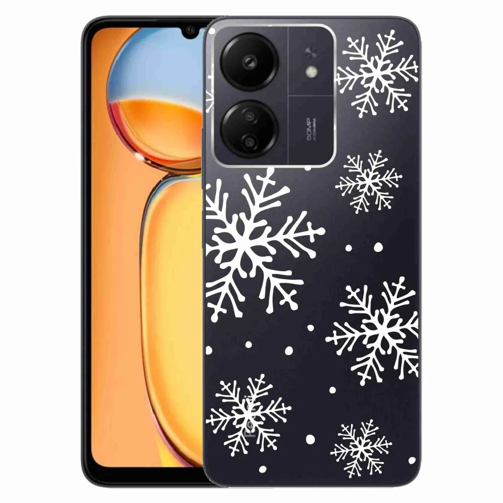 Rugalmas zselés tok mmCase kép Xiaomi Poco C65/Redmi 13C - fehér hópelyhek átlátszó háttérrel