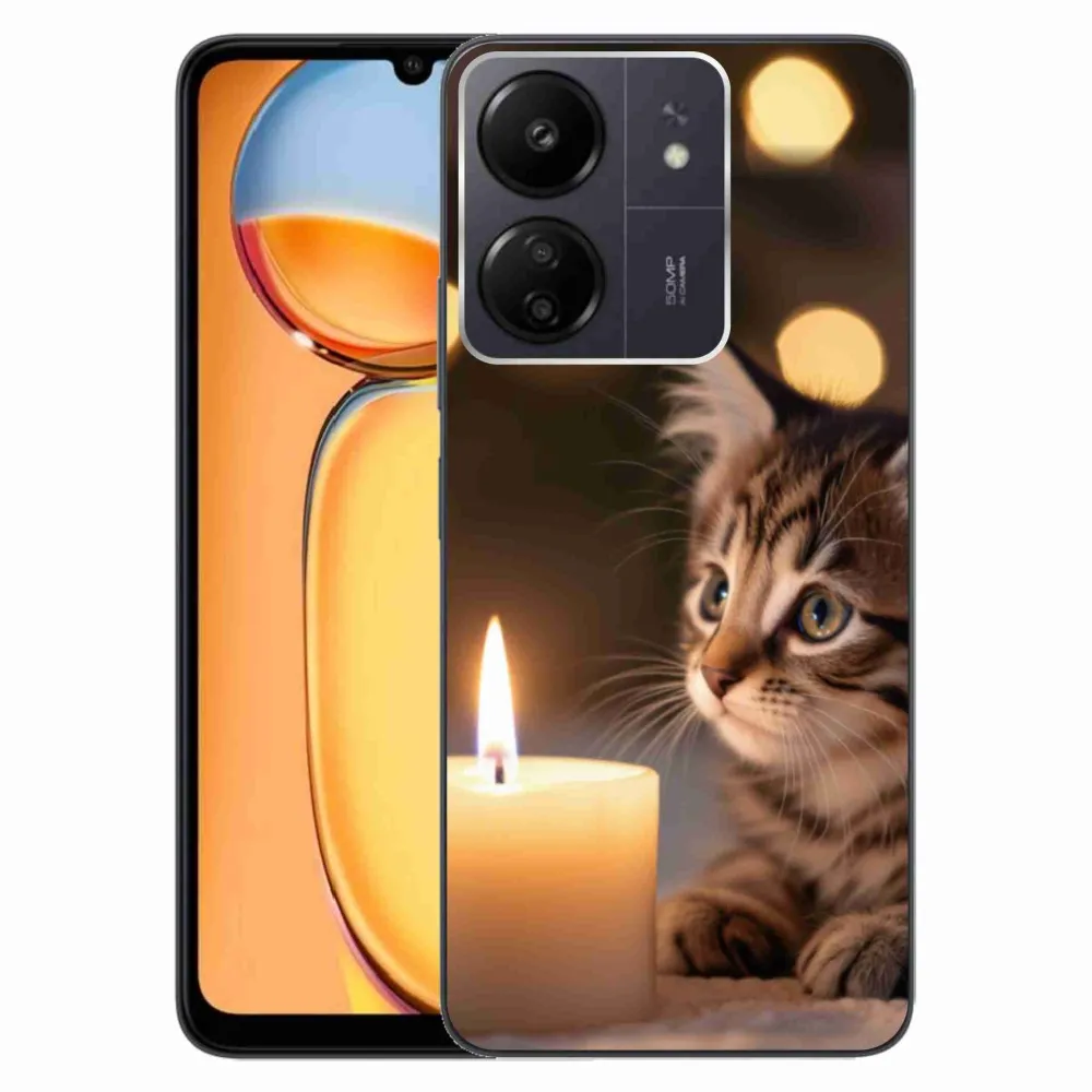Gél borítás mmCase a Xiaomi Poco C65/Redmi 13C számára - cica és gyertya