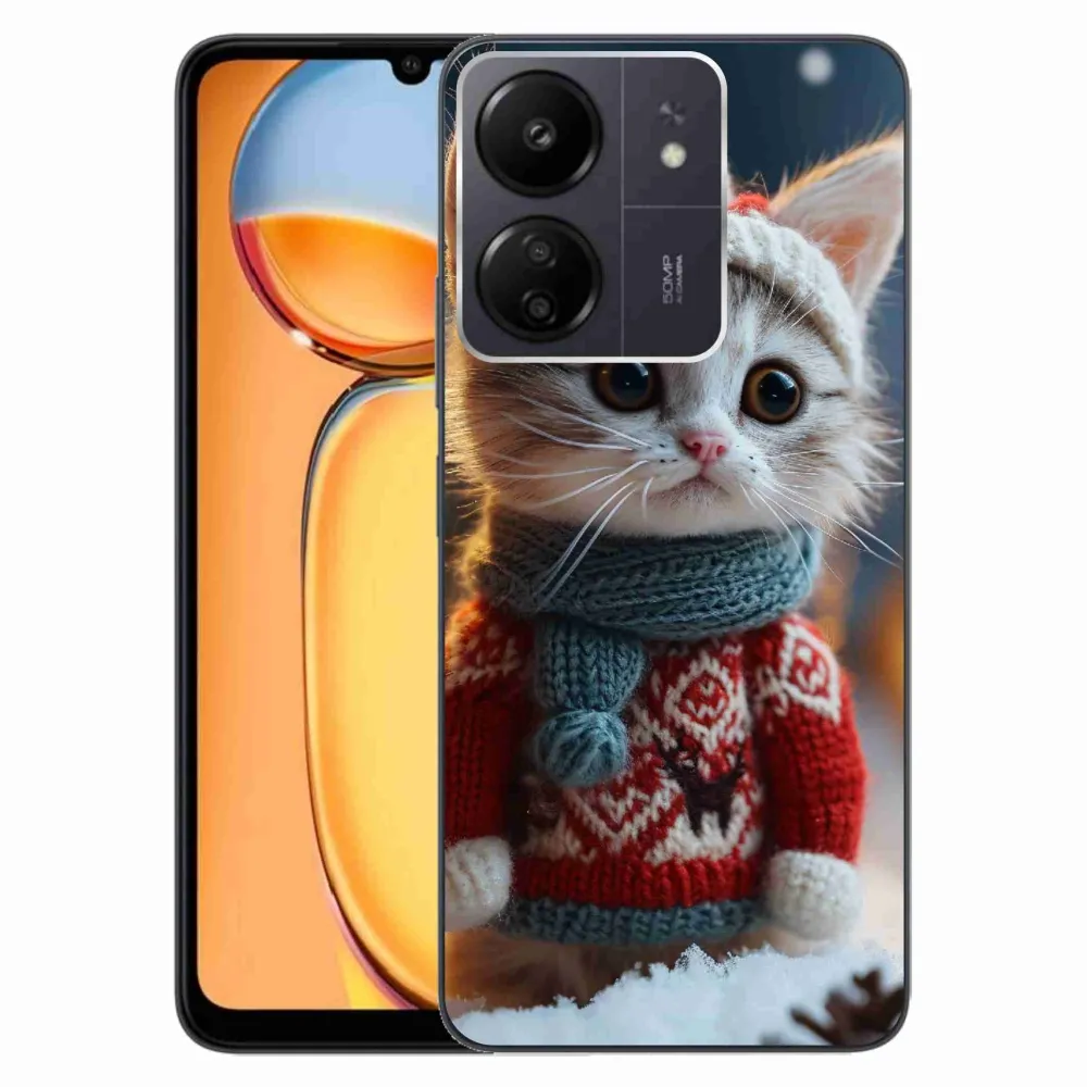 Rugalmas zselés tok mmCase képpel a Xiaomi Poco C65/Redmi 13C számára - cica pulóverben