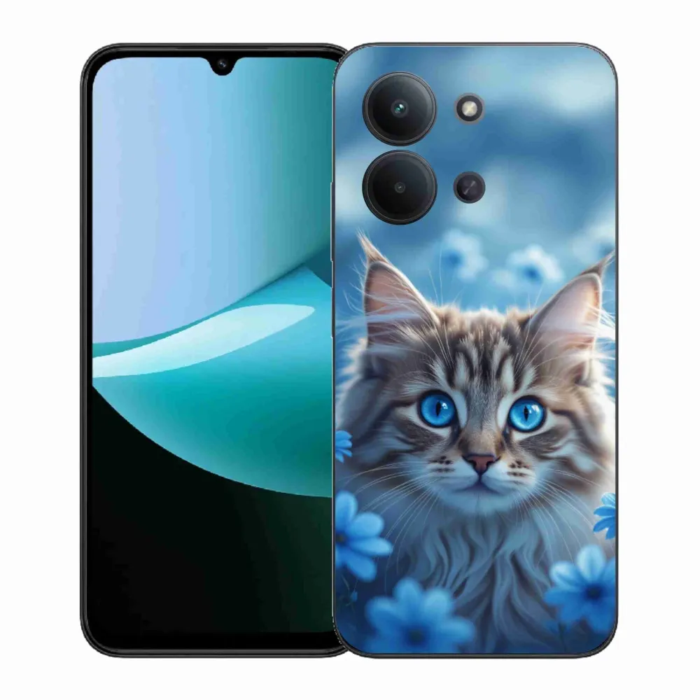 Rugalmas zselés tok mmCase képpel a Xiaomi Poco C85 (171mm)/Redmi 15C (171mm) - cica kék virágokkal