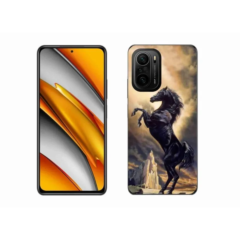 Gél borítás mmCase a Xiaomi Poco F3-hoz - fekete rajzfilm ló
