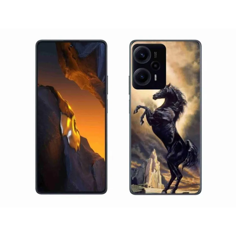 Gél borítás mmCase a Xiaomi Poco F5-hez - fekete rajzfilm ló