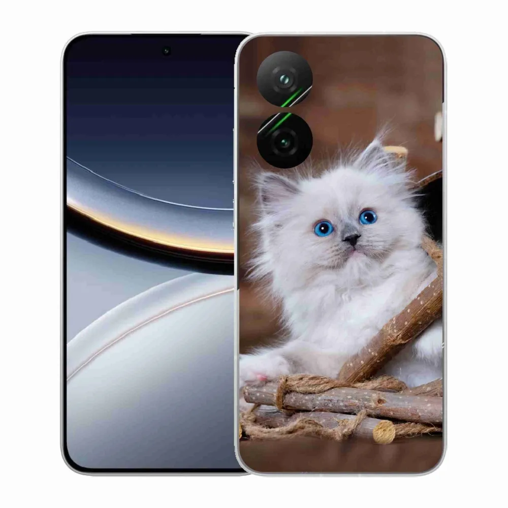 Rugalmas zselés tok mmCase képpel a Xiaomi Poco F7 5G - fehér cica képen