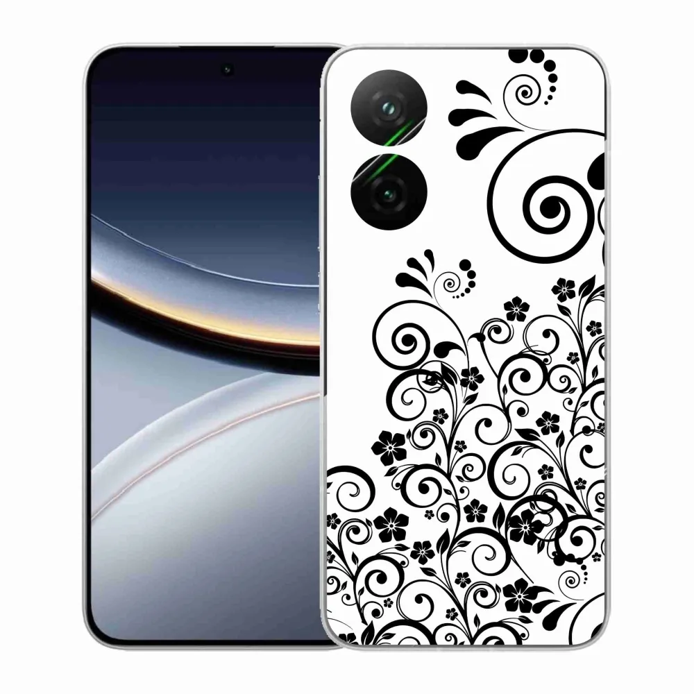 Rugalmas zselés tok mmCase a Xiaomi Poco F7 5G képével - fekete és fehér virágminták