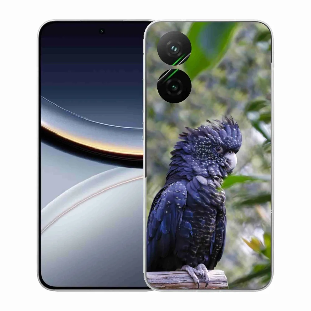 Rugalmas zselés tok mmCase a Xiaomi Poco F7 5G képével - papagáj kakadu fekete