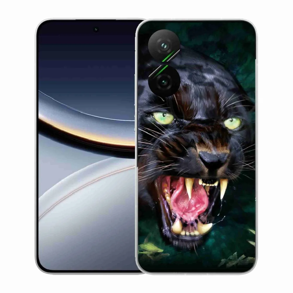 Rugalmas gél tok mmCase a Xiaomi Poco F7 5G képével - dühös fekete párduc