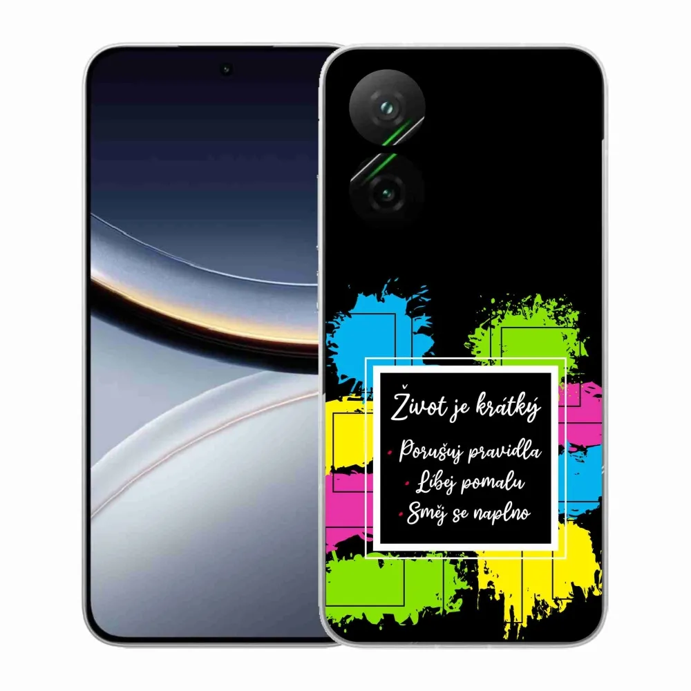 Rugalmas zselés tok mmCase a Xiaomi Poco F7 5G képével - idézet 5 fekete háttérrel
