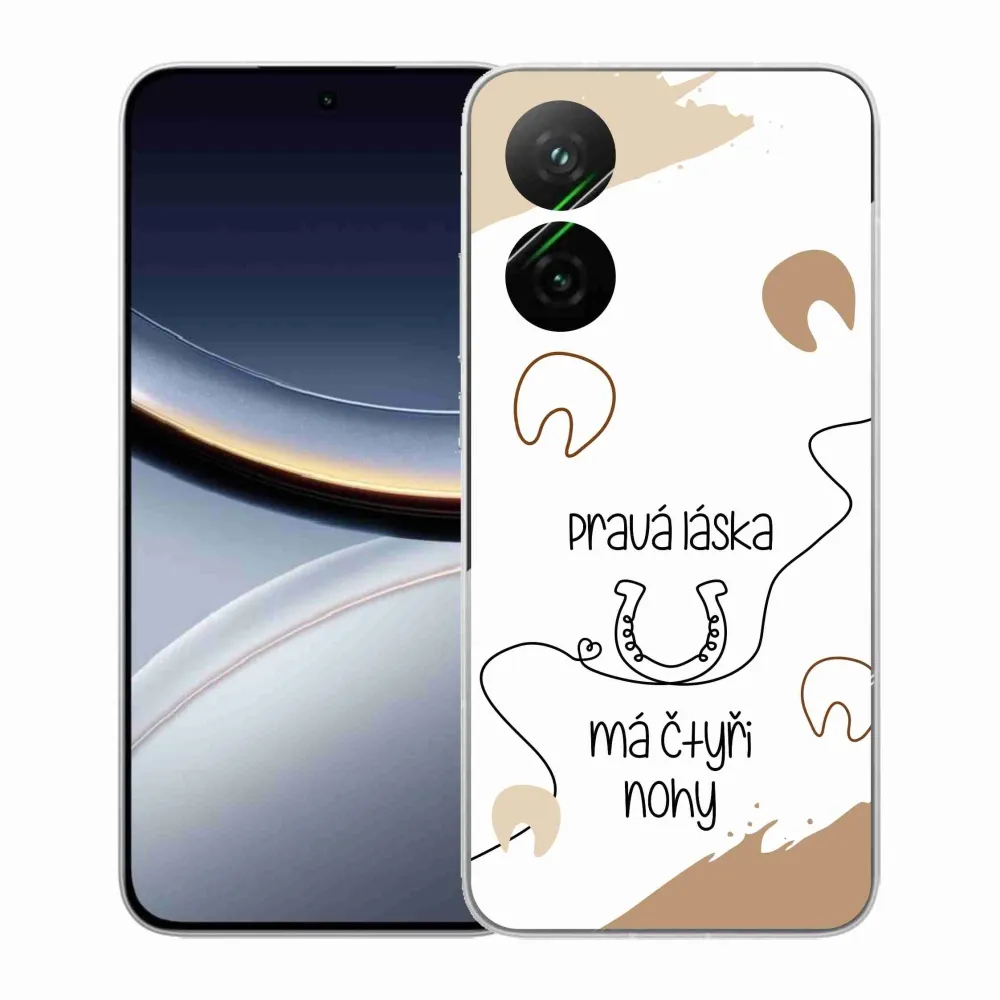 Rugalmas zselés tok mmCase a Xiaomi Poco F7 5G képével - ló motívum fehér háttérrel