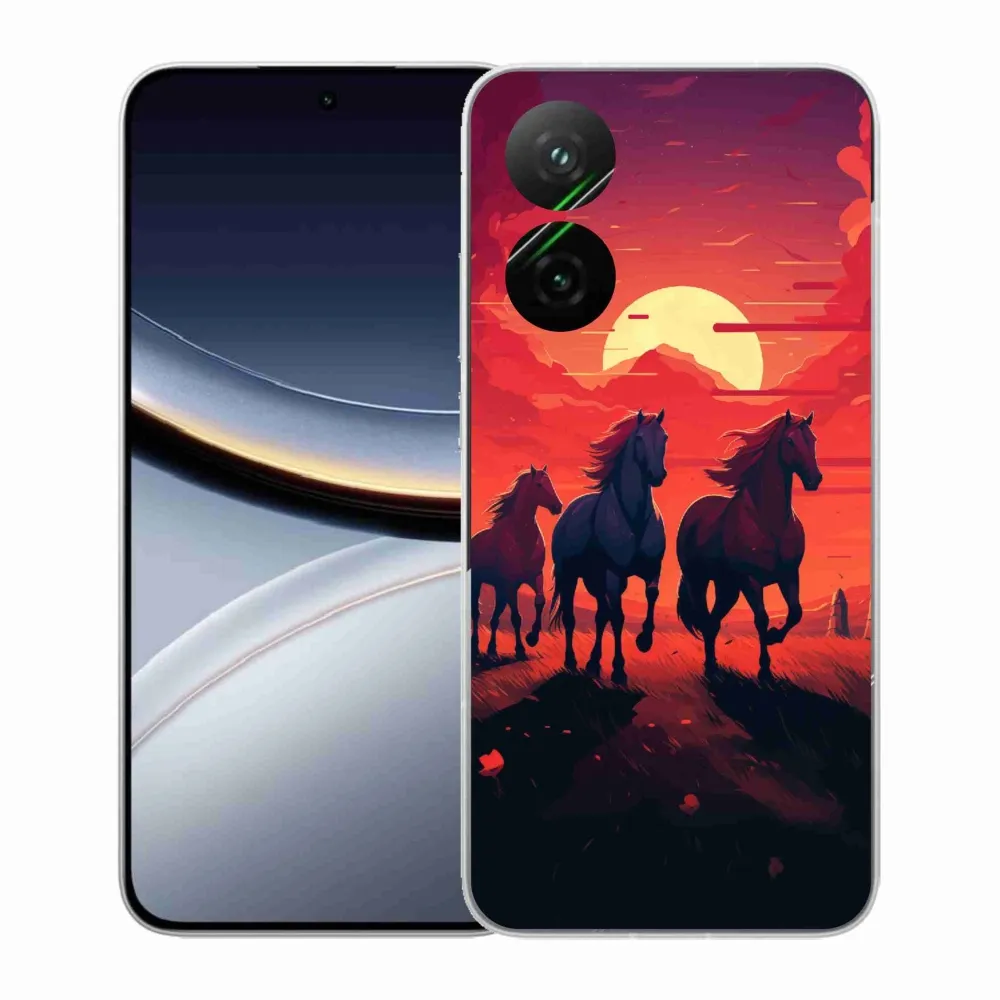 Rugalmas gél tok mmCase a Xiaomi Poco F7 5G képével - lovak és naplemente