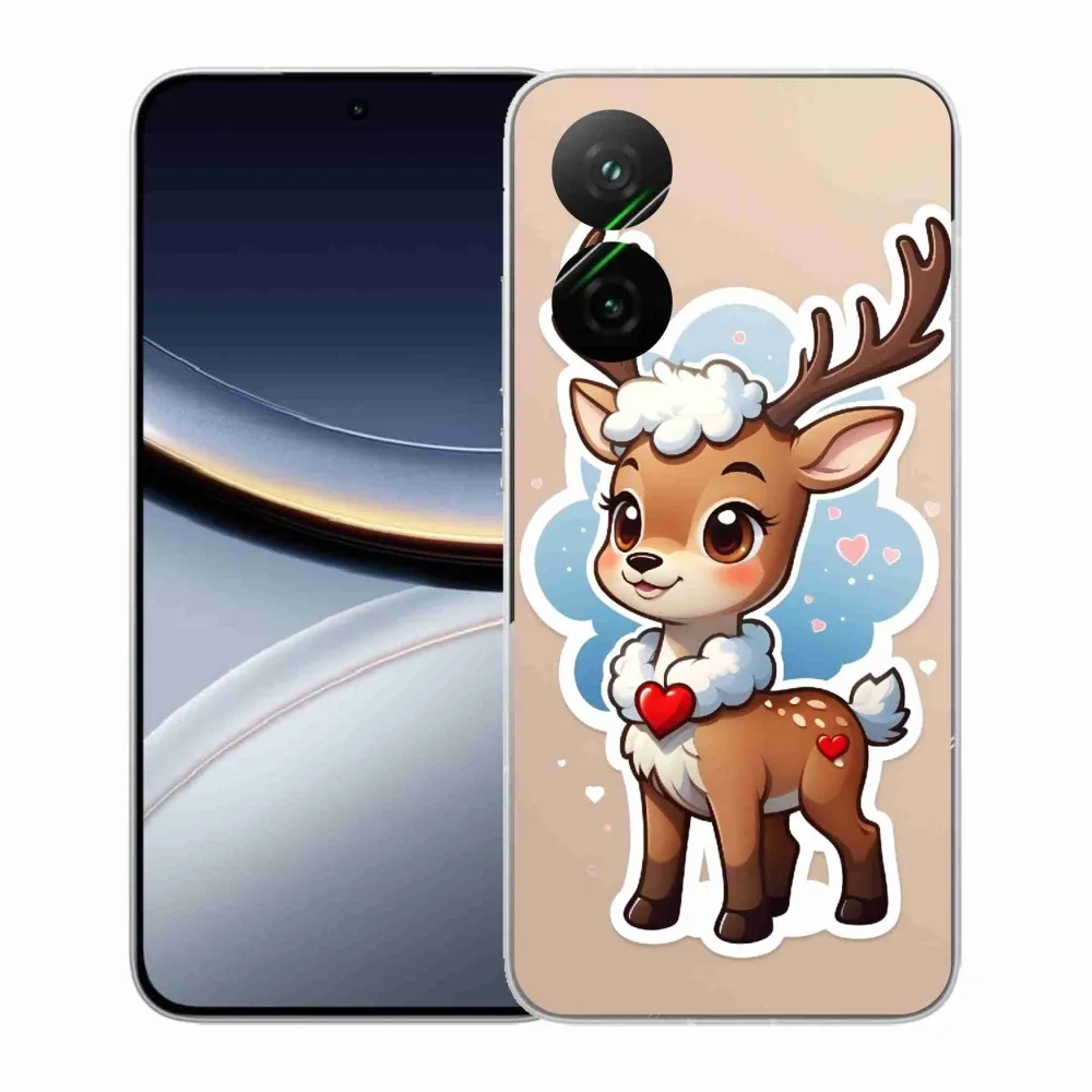 Rugalmas zselés tok mmCase a Xiaomi Poco F7 5G képével - rajzfilm rénszarvas