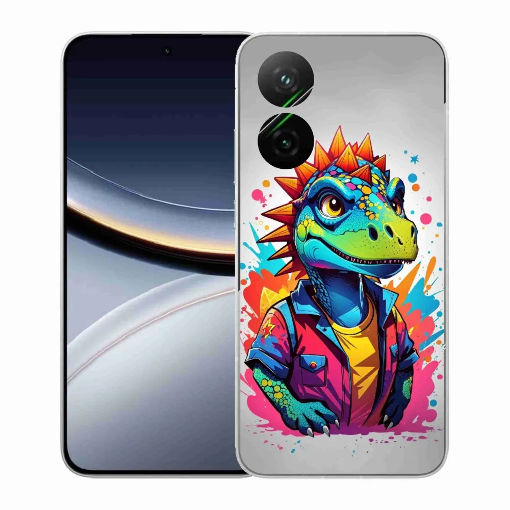 Rugalmas zselés tok mmCase kép Xiaomi Poco F7 5G - színes dinoszaurusz - színes dinoszaurusz