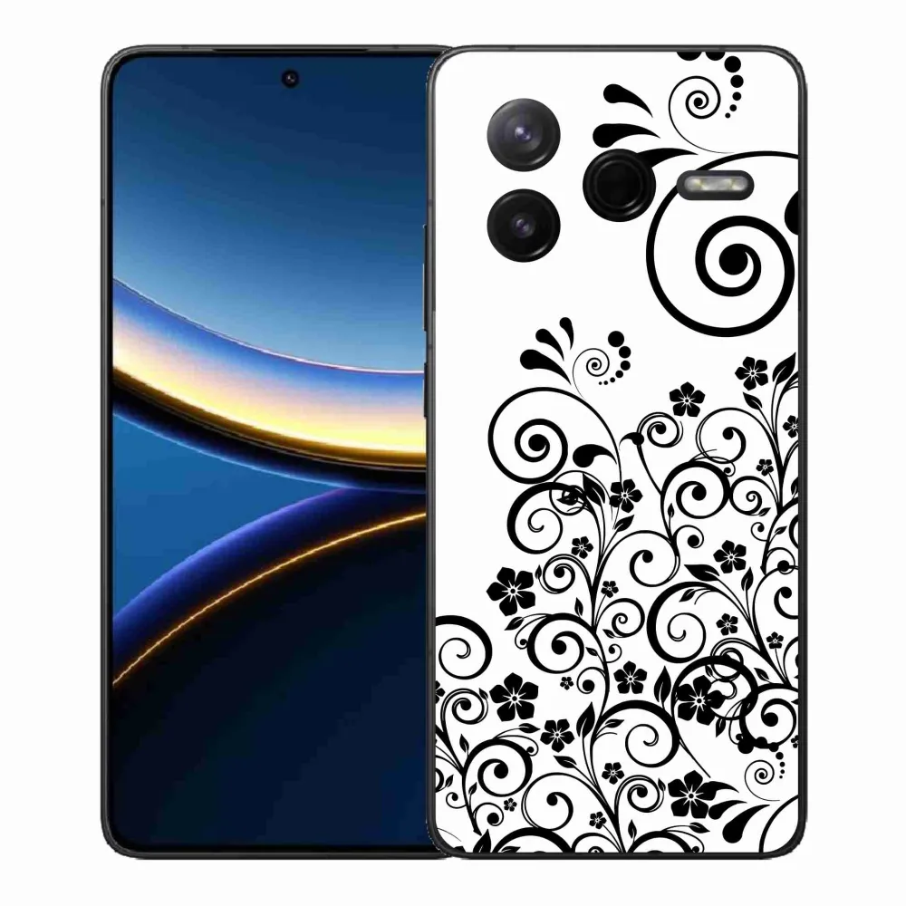 Rugalmas zselés tok mmCase a Xiaomi Poco F7 Pro képével - fekete és fehér virágminták