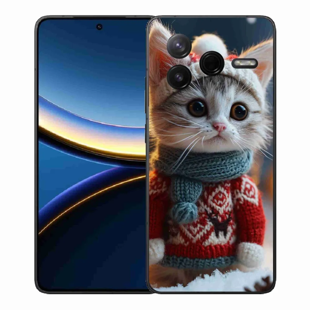 Rugalmas zselés tok mmCase a Xiaomi Poco F7 Pro képével - cica pulóverben