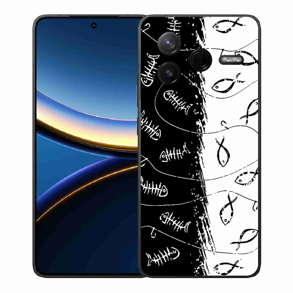 Rugalmas gél tok mmCase kép Xiaomi Poco F7 Pro - csontvázak és halak képével